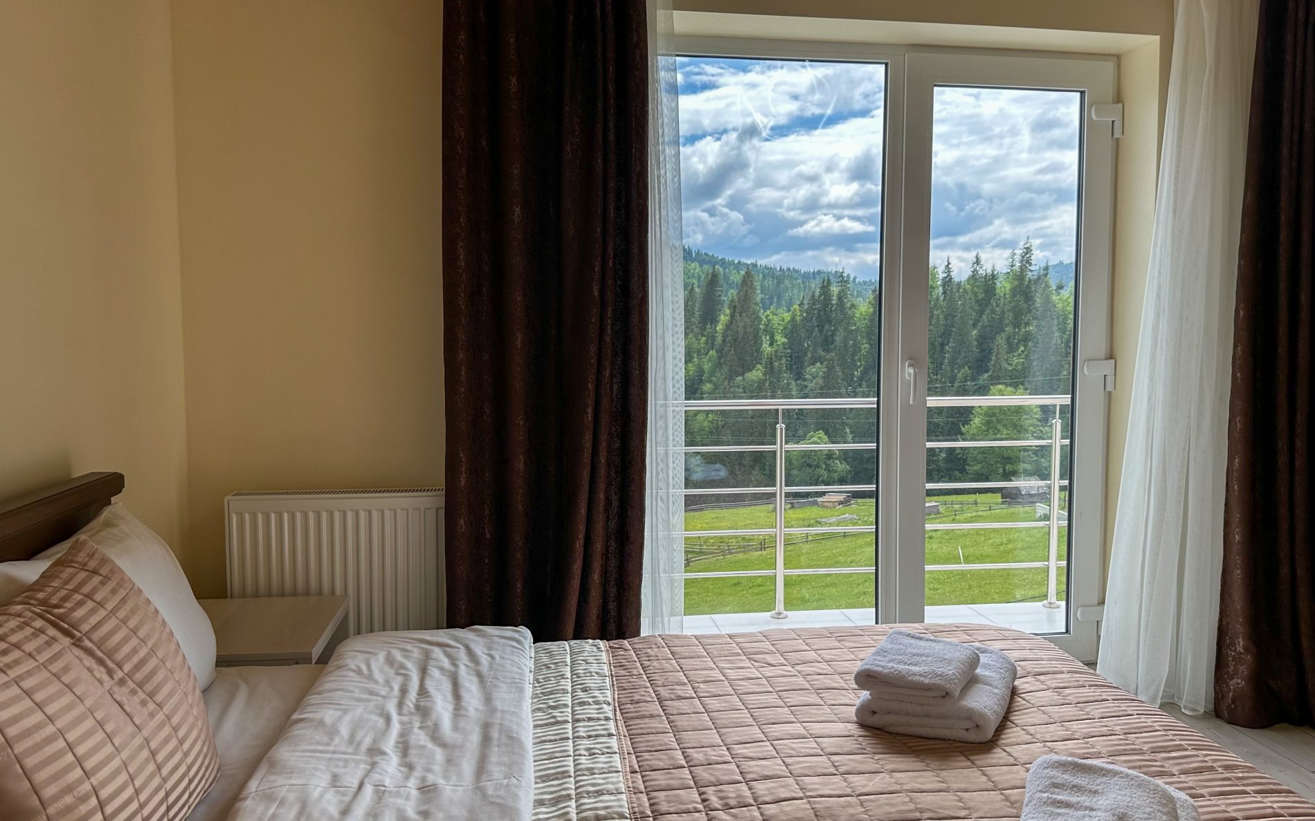 Наші двомісні номери — це зручний варіант для пар або друзів, які подорожують разом. Номери оформлені у сучасному стилі, оснащені зручними ліжками, телевізором, безкоштовним Wi-Fi та приватною ванною кімнатою. Відпочиваючи у нашому готелі, ви зможете насолодитися затишком і домашньою атмосферою навіть у горах.